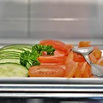 A buffet breakfast is served every morning. Meine Mama offers international meals and lies only 550 metres from Les Nations Hotel.